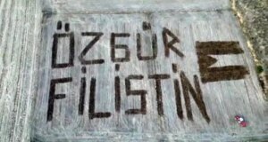 Çanakkale’nin Biga ilçesinde Hüseyin ve Fikret Savaş kardeşler, tarlalarına traktörle Filistin bayrağı çizerek ‘Özgür Filistin’ yazdı. Dron ile çekilen görüntüler sosyal medyada beğeni topladı.