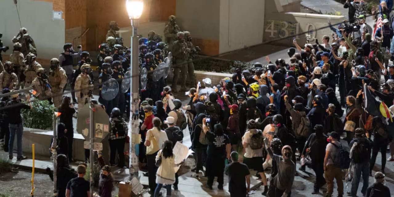 George Floyd’un öldürülmesinin ardından çıkan protestolar nedeniyle, Trump’ın ilk dönemindeki 2020 yılında İç Güvenlik Bakanlığı’na bağlı kolluk görevlileri Portland şehir merkezine sevk edilmişti.